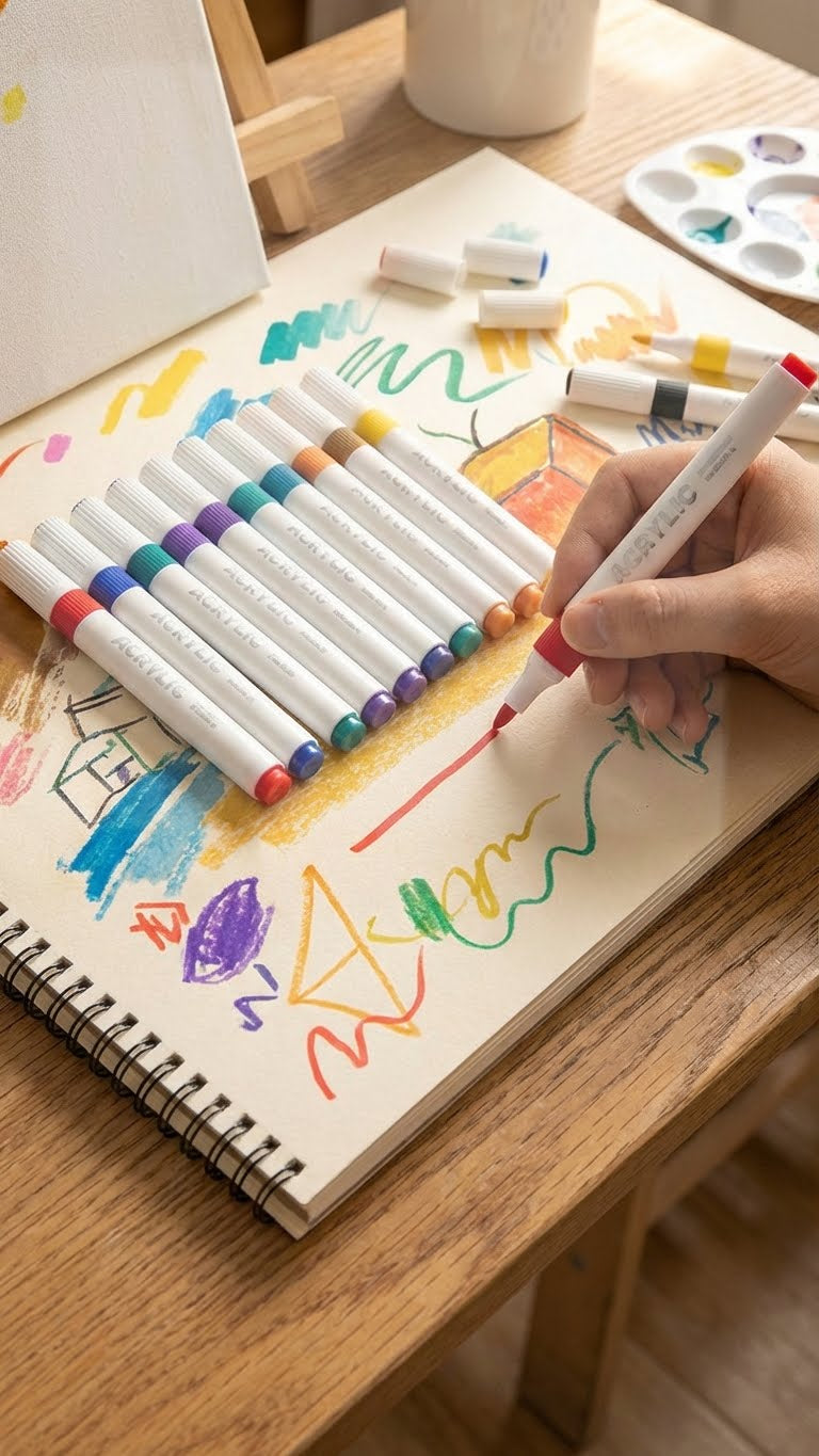 Acrylic Paint Set & 12-Color Marker Pens